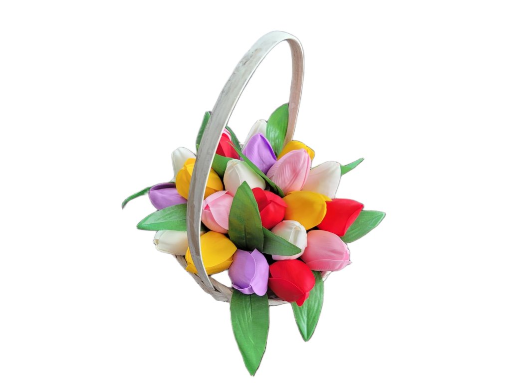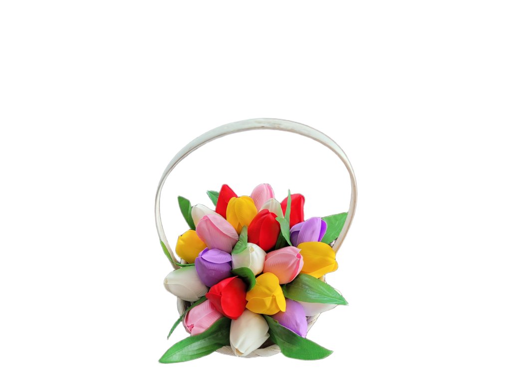 Mýdlová kytice s tulipány v košíku