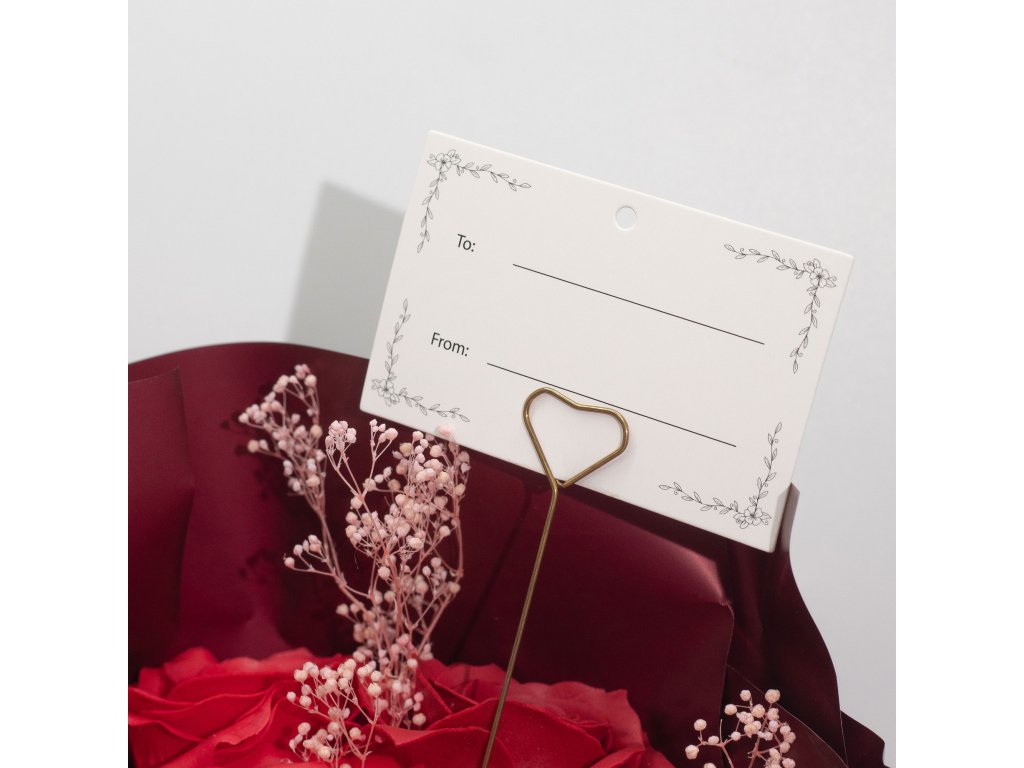 Součástí každé kytice je malá kartička, na kterou si můžete napsat svůj vlastní milostný vzkaz – okouzlující osobní dotek, který tento dárek udělá ještě výjimečnějším.
